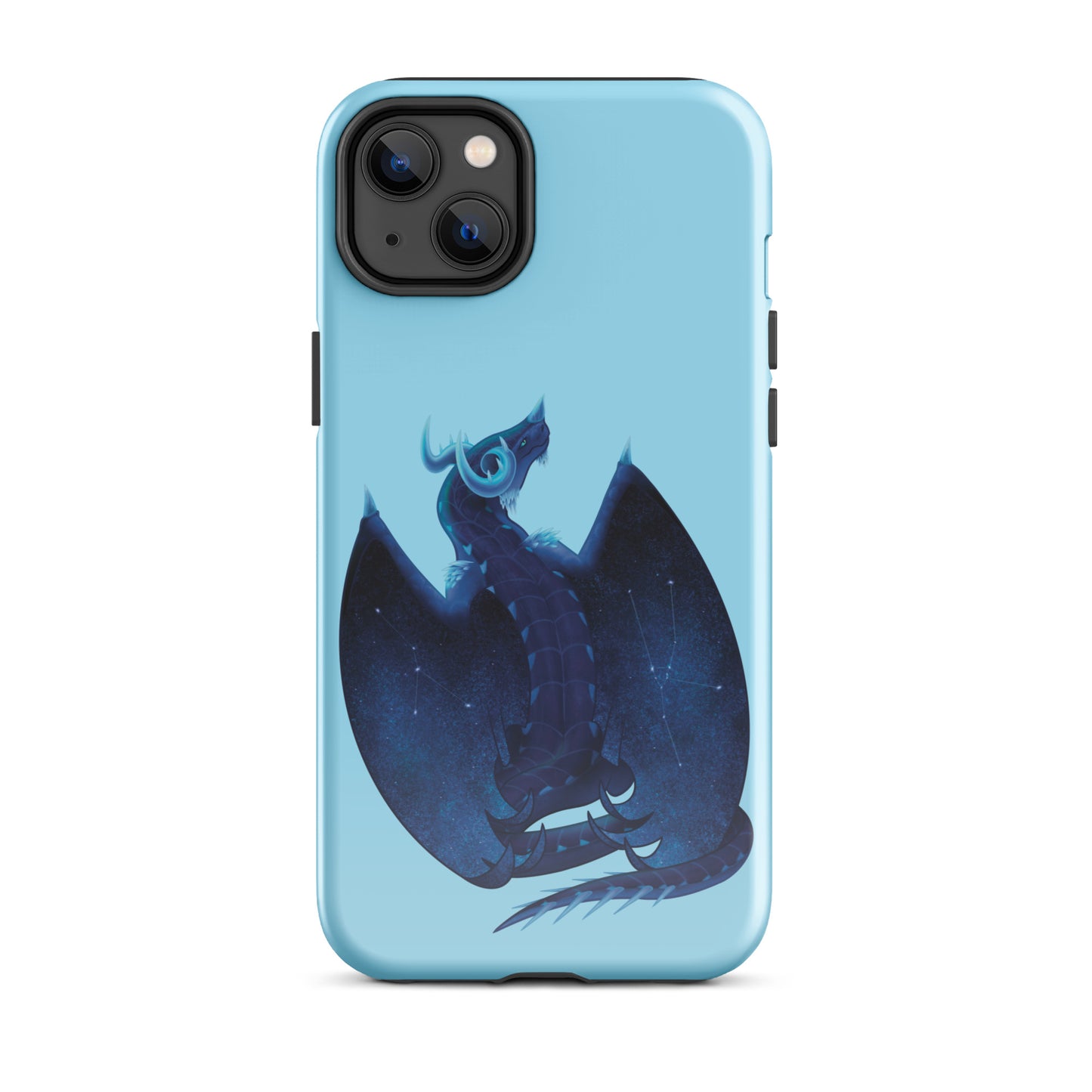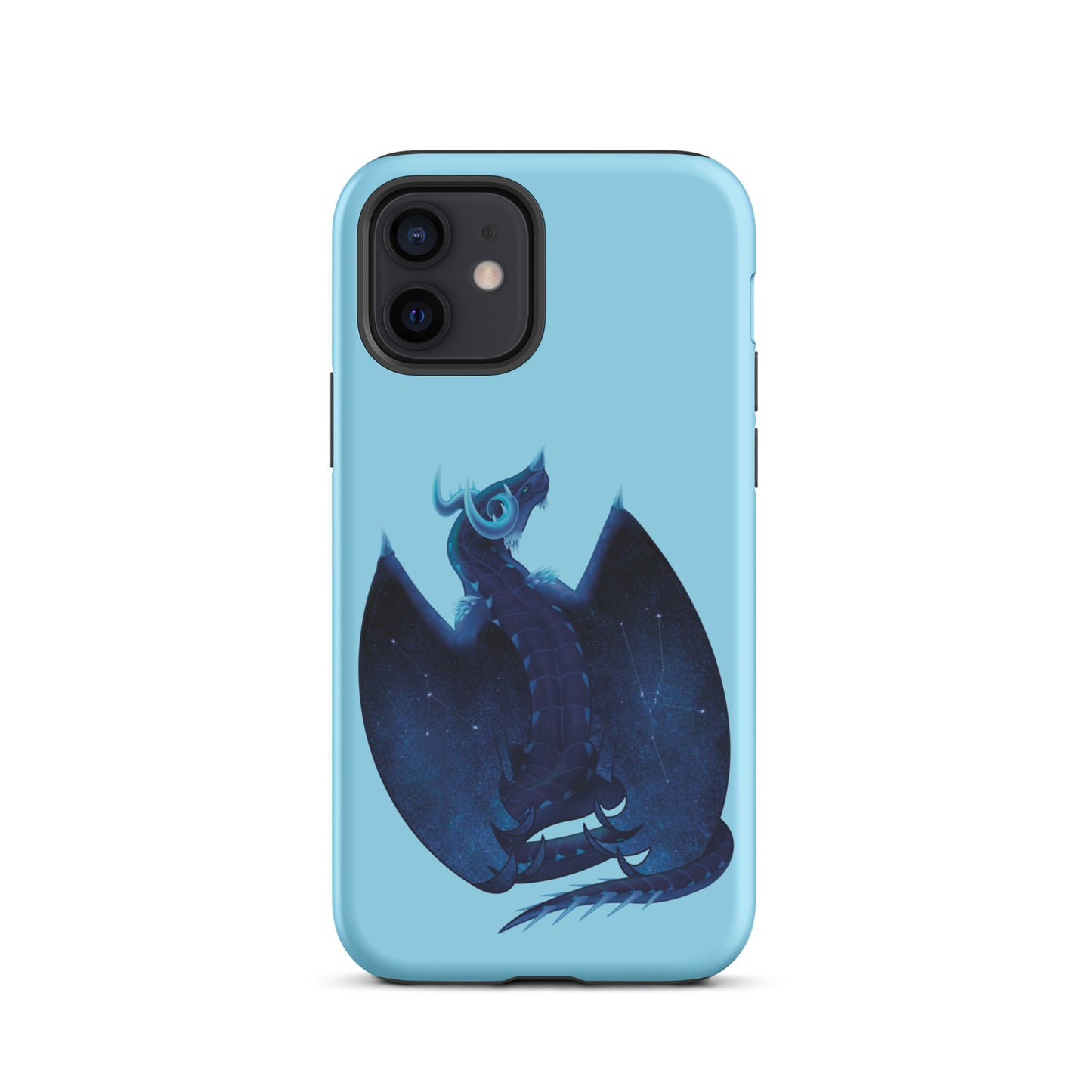 Protect your Apple iPhone with our Azurite Mineral Dragon Tough Phone Case—engineered for durability and designed for style. This premium case fits iPhone models from the 11 to the 16, ensuring perfect compatibility with your device. Its dual-layer construction features a rugged polycarbonate outer shell for impact resistance and a soft polyurethane inner liner to absorb shock. Precise port openings provide seamless access to all your phone's features, while the induction charger compatibility ensures effortless wireless charging.